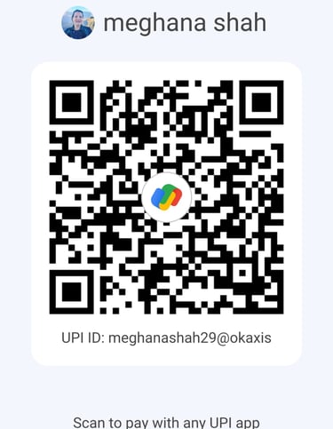Payment: meghanashah29@okaxis Use the Scanner code to make Payment.